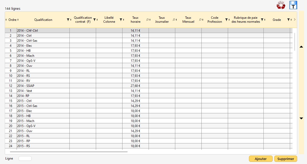 Important : les taux et valeurs des qualifications s'appliquent dans de nombreux outils tels que l'édition de contrats de travail, le calcul de masse salariale, la déclaration DUE / GUSO ou l'édition de planning annexe. Pour une personnalisation au cas par cas, renseignez les valeurs spécifiques dans la fiche de la personne correspondante.