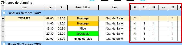 Cette fonction affiche le personnel demandé sur une ligne de planning sous la forme de colonnes de qualifications.