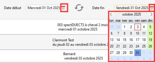 1/ Dans la table des spectacles, cliquez sur les petits calendriers pour renseigner la période de recherche de vos spectacles.
