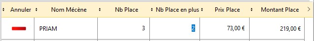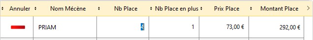 Info : Directement, dans la table des mécènes, la réservation apparaît au niveau de la ligne du mécène.