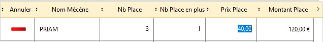 Modifier le prix d'une place lié à la compensation du don d'un mécène sur un spectacle :