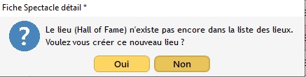 4/ Une alerte s'affiche, si le lieu modifié est déjà occupé par un autre spectacle ou activités.