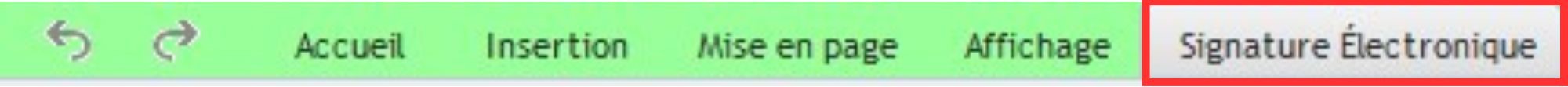 1/ Une fois votre modèle de contrat de cession ouvert, allez dans l'onglet "Signature électronique"
