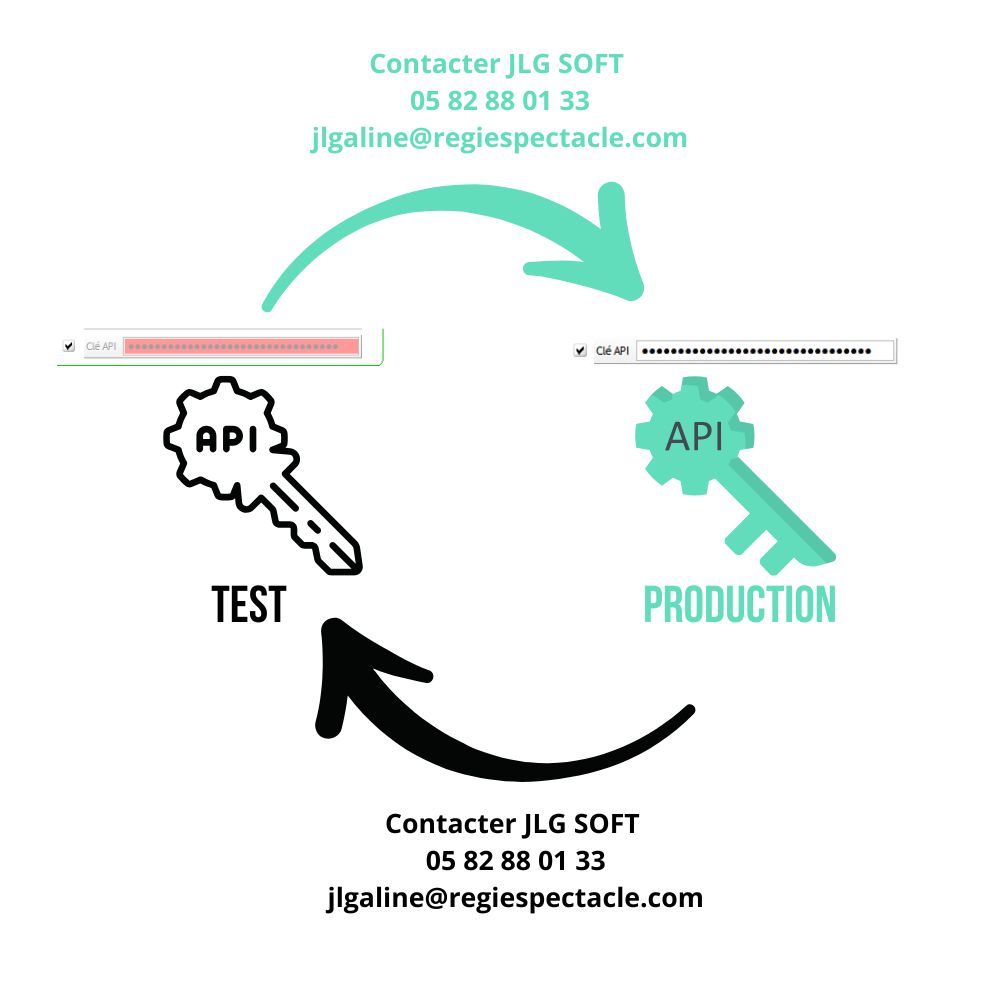 Avant de pouvoir utiliser cette fonctionnalité dans RégieSpectacle, il va falloir activer une des clés API. Pour ce faire vous devez obligatoirement contacter l'équipe de JLG SOFT. Vous pouvez nous contacter par téléphone (05 82 88 01 33) mais une trace écrite par mail sera nécessaire (jlgaline@regiespectacle.com).