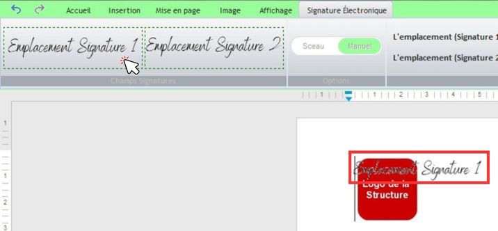 Info : L'emplacement signature apparaît automatiquement en haut à gauche de la page.