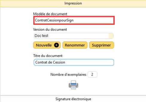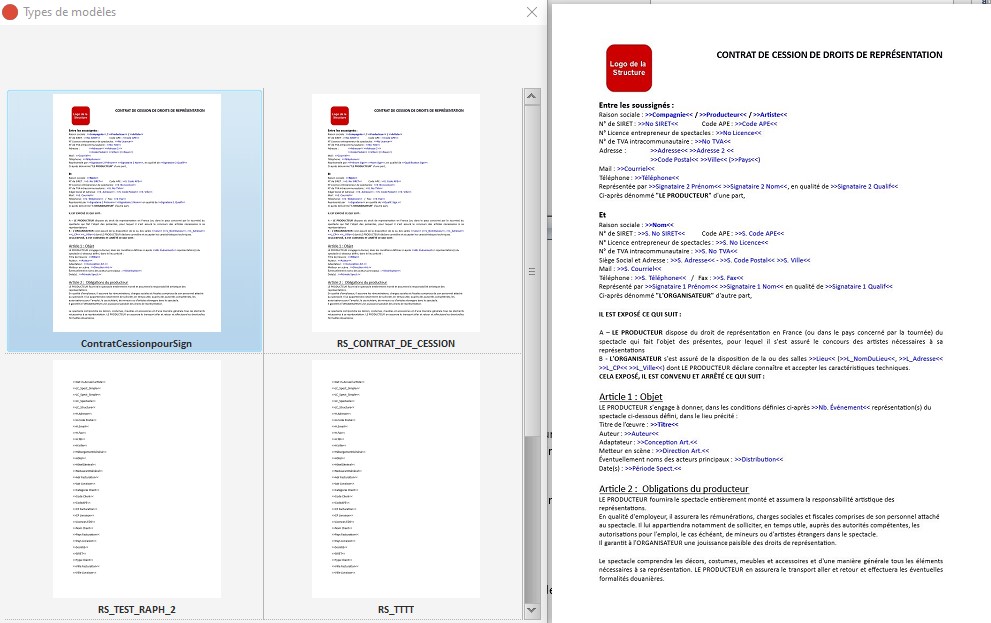 3/ Sélectionnez le modèle de contrat de cession que vous avez édité pour les signatures électroniques de ces contrats.
