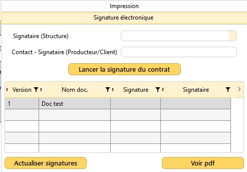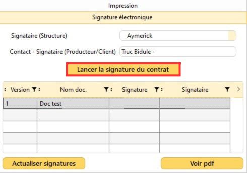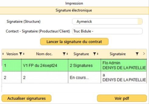 Important : Vous serez obligé(e) d'éditer une nouvelle version de document si vous changez le Signataire (Structure) et le Contact (Producteur / Client) dans le volet "Signature électronique" de la boîte à outils.