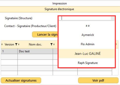 Etape 3 : Sélection du signataire Producteur / Client