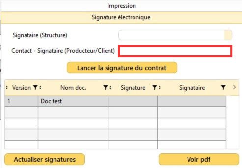 2/ Cliquez dans le champ "Contact - Signataire (Producteur / Client)".