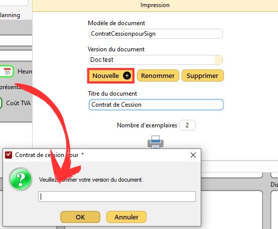 2/ Cliquez sur le bouton "Nouvelle" et renseignez le nom de votre nouvelle version de document.