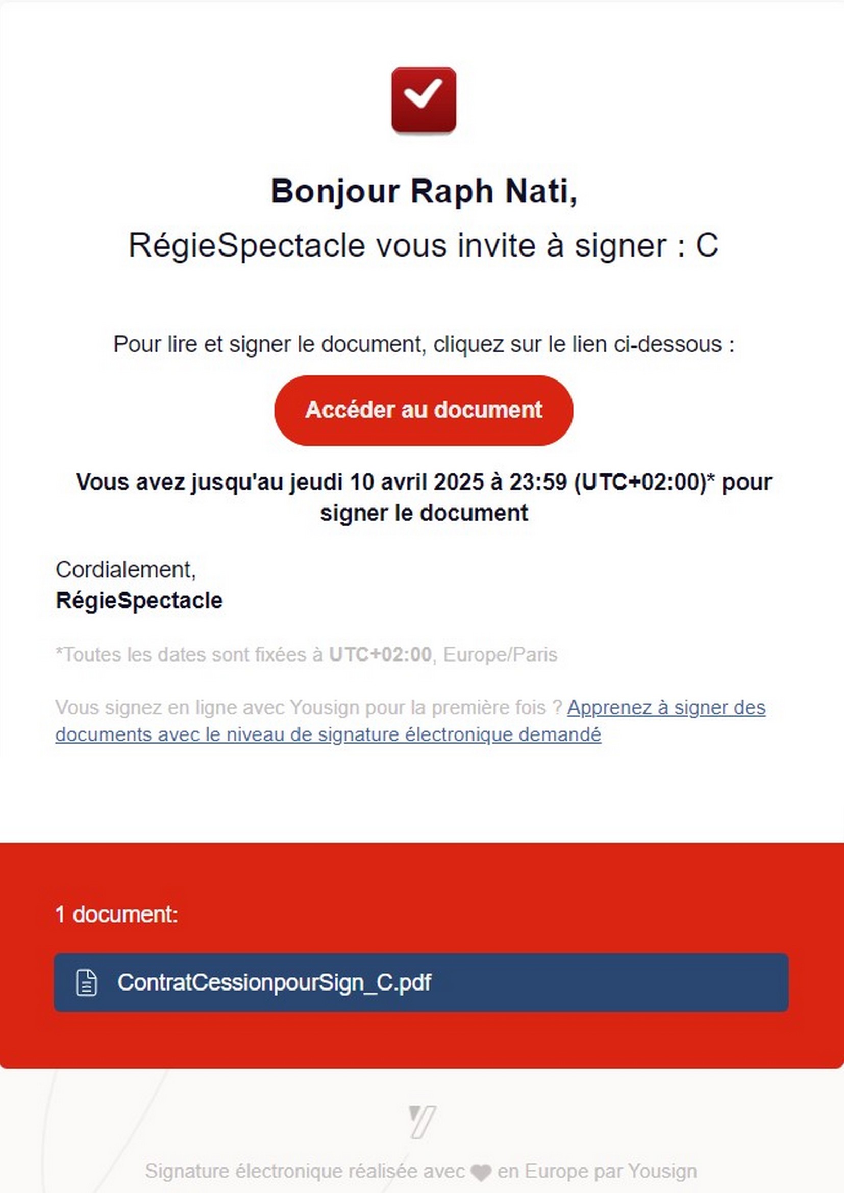 . Un mail spécifiant au signataire de signer le contrat.