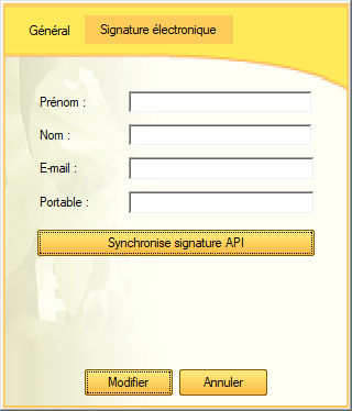 Une fois remplis, cliquez sur le bouton ''Synchronisation API'' pour synchroniser l’image de la signature avec l’API.