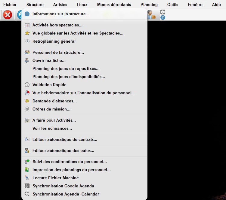 L'onglet "Structure" permet les actions suivantes :