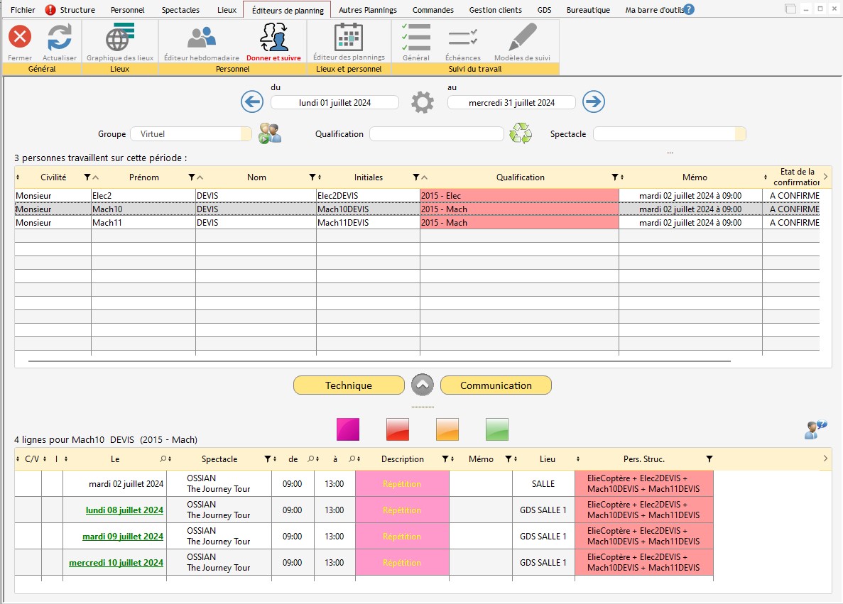 - - par groupe de personnel (ex. ne voir que le Groupe Lumière)