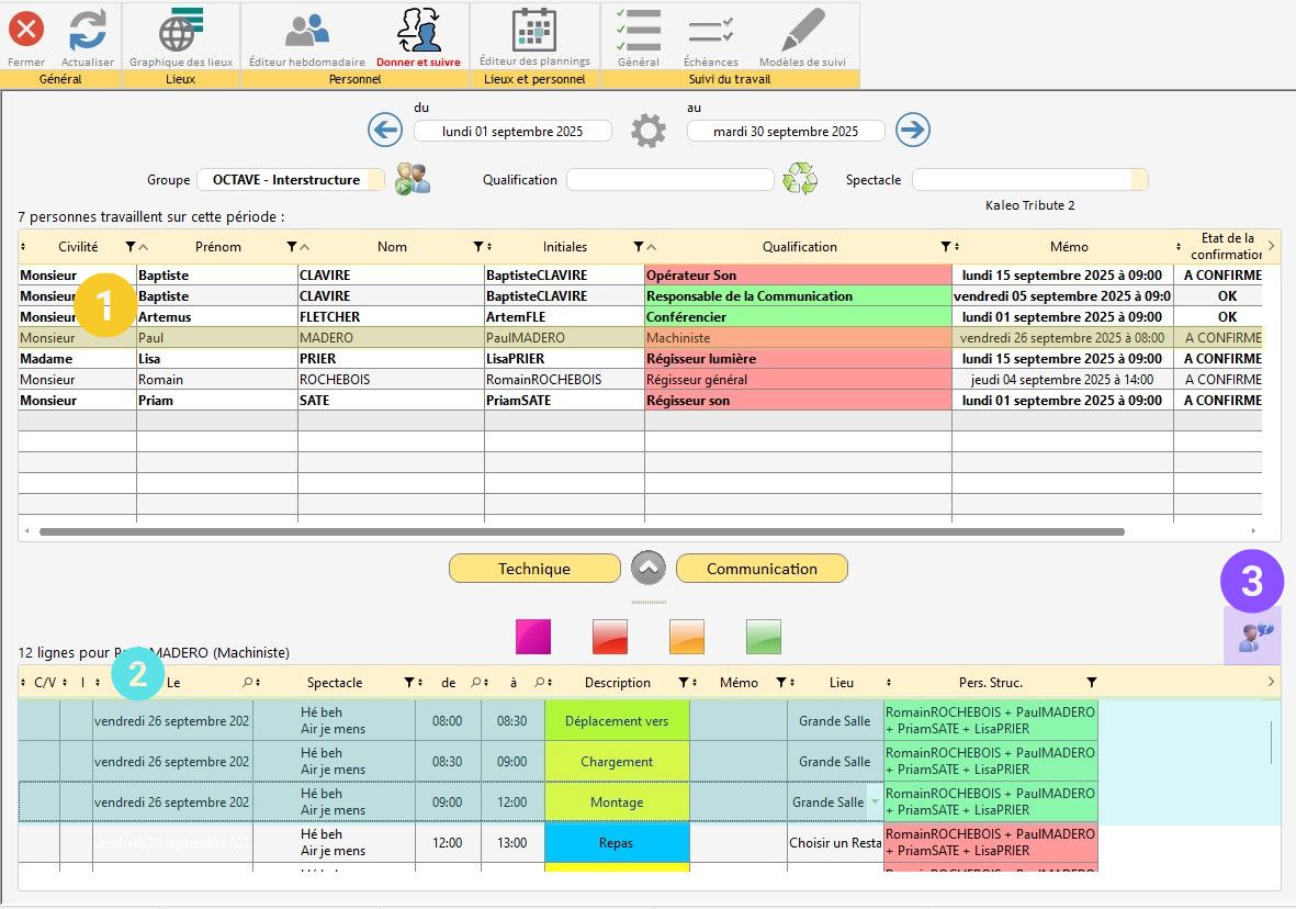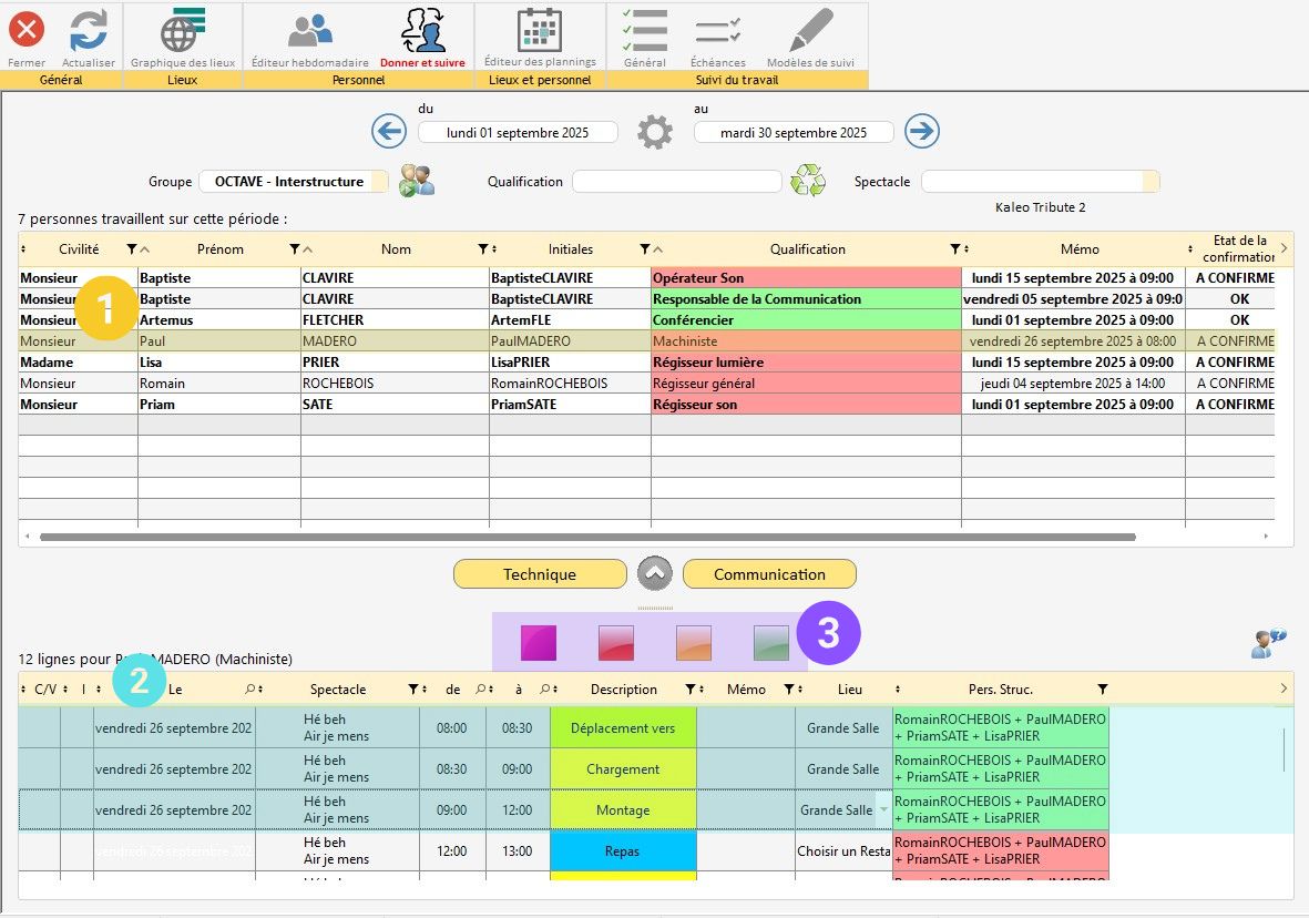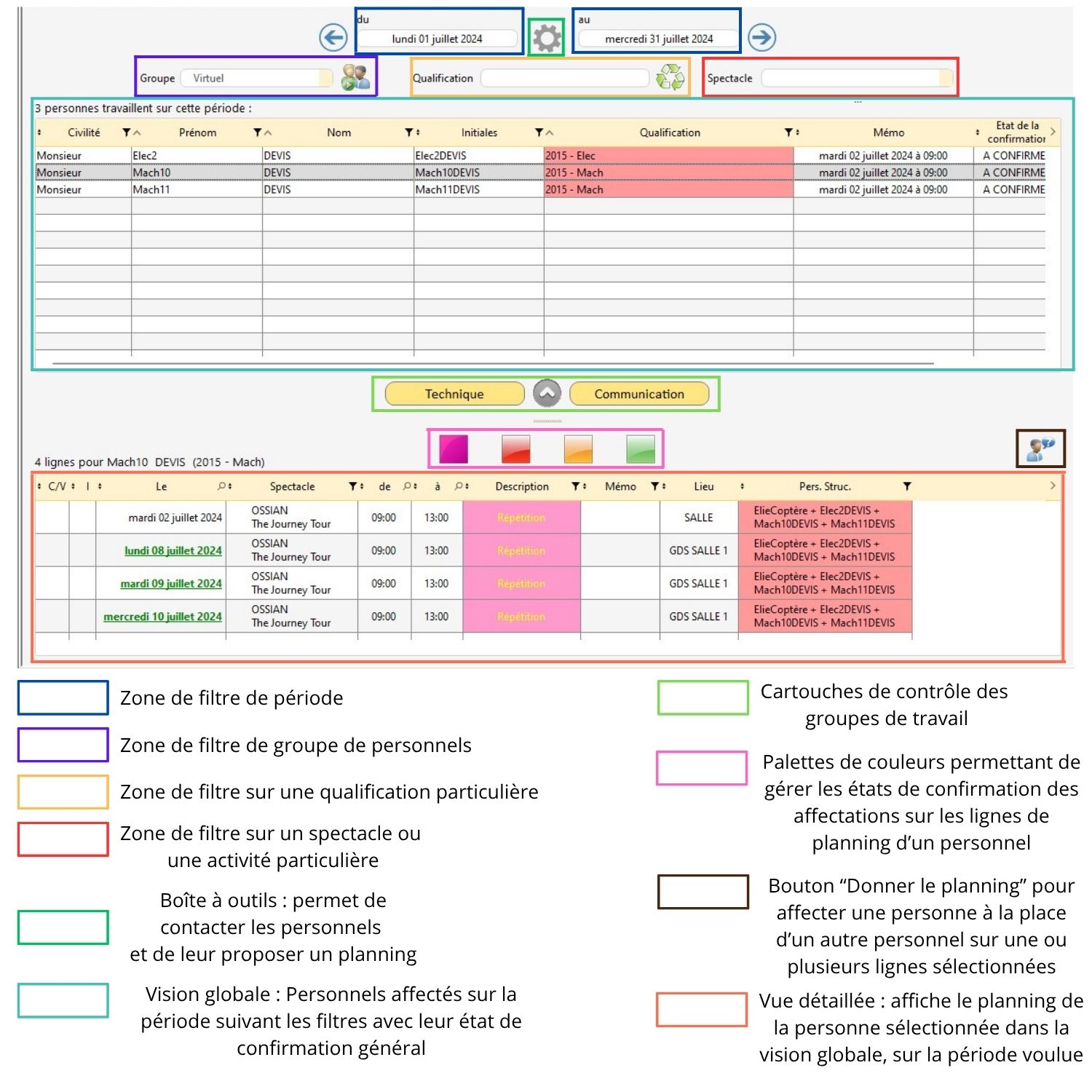 Ainsi, lors de la planification les permanents de la structure sont toujours disponibles et les intermittents / bénévoles / stagiaires etc. sont toujours à confirmer.