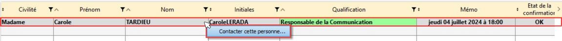 Rappel : attention au double-clic qui, lui, ouvre la fiche de la personne.
