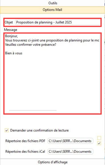 Survolez la case pour connaître son effet. Ces informations aideront à resituer la période concernée lorsque le destinataire confirmera sa disponibilité.