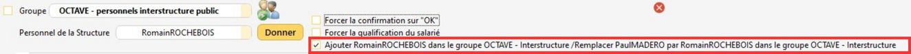 Si l'option "Forcer la qualification du salarié" est cochée, le receveur conserve sa qualification principale (celle inscrite par défaut dans sa fiche personnel) et non celle du donneur.