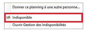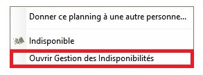 3/ Choisissez "Ouvrir Gestion des Indisponibilités / Disponibilités".