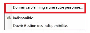 3/ Faites un clic droit sur une ligne de la table du bas et choisissez "Donner ce planning à une autre personne".