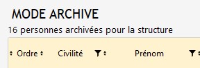 Pour éviter des confusions entre la liste normale et la liste en mode archive, en haut à gauche de la Liste du Personnel, apparaît :