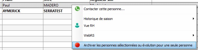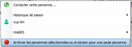 2/ Faites un clic droit sur la fiche du personnel et sélectionnez "Archiver les personnes sélectionnées ou évolution pour une seule personne"