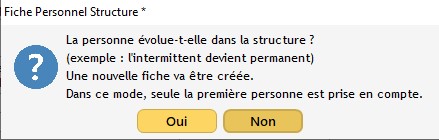 5/ Un autre message vous demandant si la personne évolue au sein de la structure apparaît. Cliquez sur "Non".