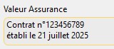 Dans l'onglet "Informations" de la Fiche Artiste, le champ "Valeur d'assurance" permet d'apporter des informations supplémentaires au champ "Assurance".