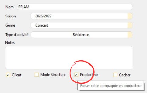 L'avantage premier de renseigner le lien d'un groupe d'évènement / compagnie avec un producteur est d'éviter les ressaisies ou les copier/coller de données. En effet, lors de la création ou de la modification d'un document, on utilise les données du producteur et non de la compagnie. Ainsi les informations d'une fiche Producteur sont copiées directement dans la nouvelle fiche compagnie.
