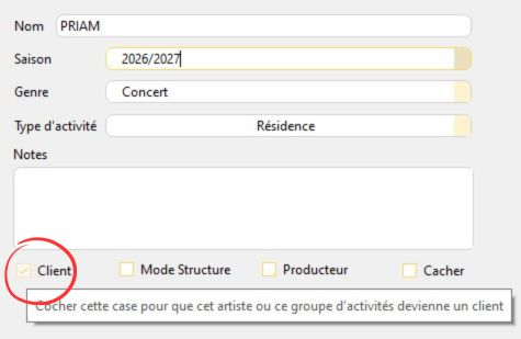 Un groupe d'évènement (ou artistes) peut avoir le statut de client.