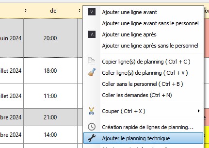 3/ Cliquez droit et sélectionnez "Ajouter le planning technique".