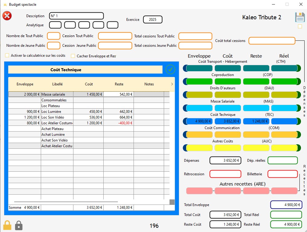 Dans RégieSpectacle, il existe deux versions qui permettent à l'utilisateur de renseigner le budget d'un spectacle.