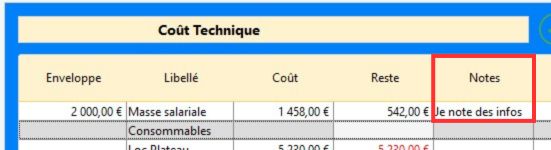Info : Chaque cellule "Note" est limité à 50 caractères.