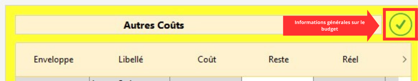 Info : si dans un budget, une valeur est verrouillée, elle apparaîtra en gras.