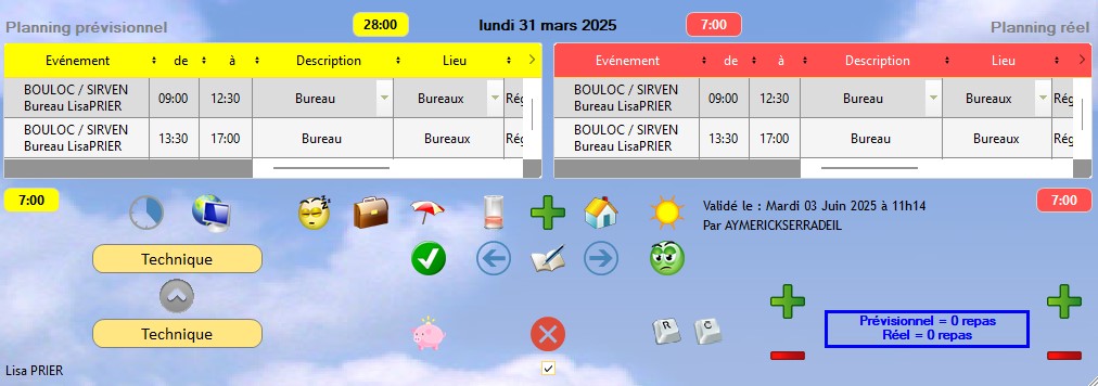 Note importante : à partir du moment où une journée est validée en planning réel, le calcul du planning annuel s'effectue sur ce planning pour toute la période. Il est donc vivement conseillé de valider la période complète.