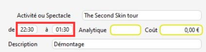 Vous saisissez 22:30 – 01:30 (ci-dessous dans la fenêtre ''Ajout de ligne de planning'')
