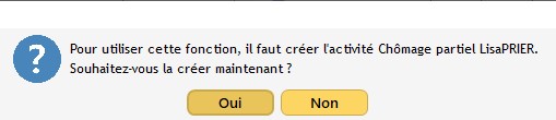 Une seconde fenêtre vous prévient qu’une fiche activité nominative «Chômage Partiel » est nécessaire.