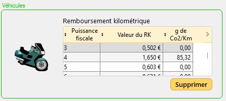 Saisissez ici les paramètres des véhicules (Configurations du personnel - Gains G15).