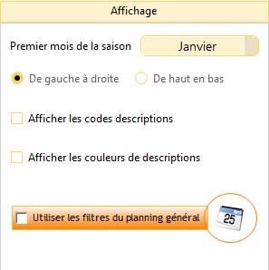 4/ Dans la boîte à outils, dans le volet "Affichage" désignez le premier mois de l'année, et le sens de visualisation (vertical ou horizontal).