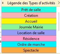 Si un spectacle ou une activité hors spectacle n'a pas de type d'activité, les cases n'auront pas de couleurs, mais dans la Vue Annuelle, on pourra les visualiser grâce à des " # ".