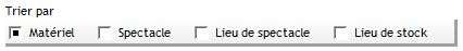 L'onglet "Filtre" permet de filtrer des spectacles, un lieu de spectacle, un lieu de stock ou un matériel afin de préciser votre choix.